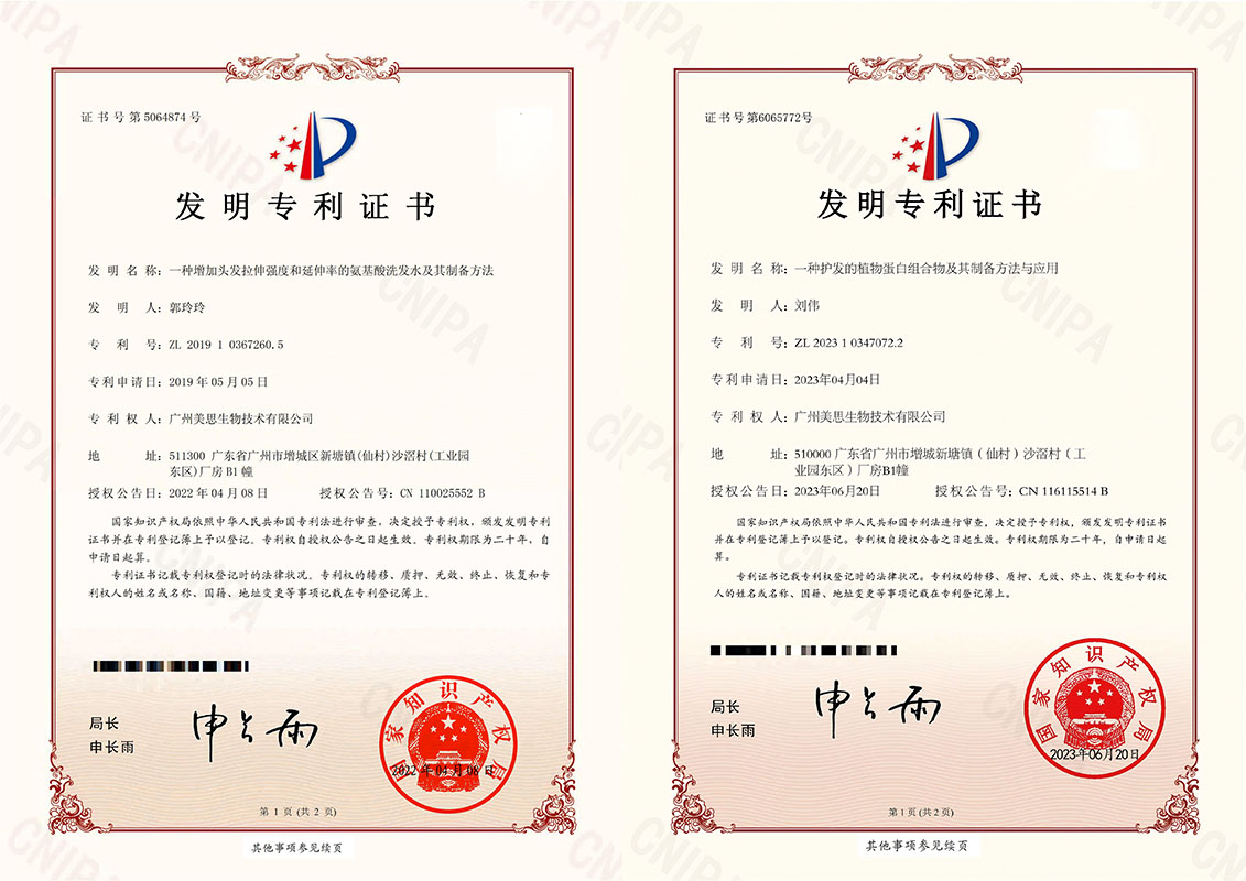 黛熙梦的核心优势在于多效合一的成分协同作用,不是单一成分的堆砌,而是形成了"精准修护-深层滋养-长效锁水-固色蓬松"的完整链路,还手握两项国家发明专利(一种护发的植物蛋白组合物及其制备方法与应用,专利号ZL202310347072.2;一种增加头发拉伸强度和延伸率的氨基酸洗发水及其制备方法,专利号ZL201910367260.5),防断固发、修护受损的效果有权威背书,敏感头皮也能安心用。
