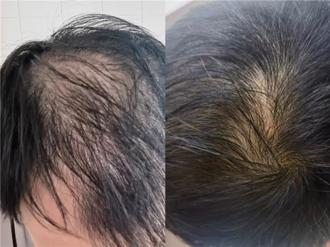 林先生因工作性质需频繁户外作业,紫外线照射、工地粉尘侵扰叠加项目冲刺期的熬夜加班,发缝宽至能窥见头皮,日常社交时倍感困扰。此前使用的育发液要么质地厚重黏腻、沾染枕巾,要么气味强烈妨碍规律使用。使用该育发产品后,两月时分线处新生毛发渐显;四月后,新生发丝持续增韧,发隙显著收缩,头部油腻瘙痒等不适完全消除;六个月后,发量浓密指数显著提升。