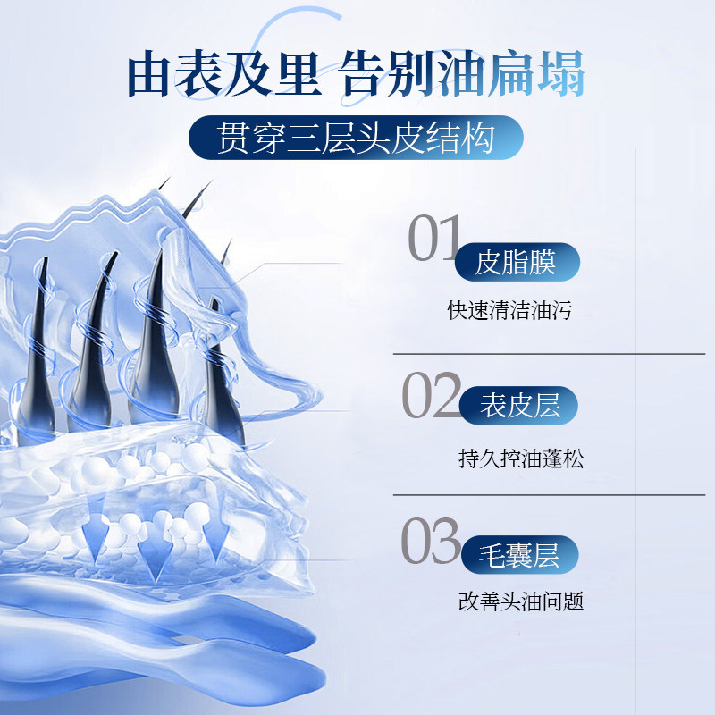 产品采用水杨酸搭配乳酸杆菌发酵产物的控油组合,兼顾深层净油与头皮微生态平衡。水杨酸具备脂溶性特性,可深入毛囊口,溶解多余油脂与老废角质,疏通堵塞的毛孔,减少油脂堆积引发的扁塌与头痒;乳酸杆菌发酵产物能调节头皮微生态,抑制有害菌群繁殖,减少头屑与异味,从源头稳定皮脂腺分泌,延长头皮清爽时长,实现洗后三天仍保持干爽状态。