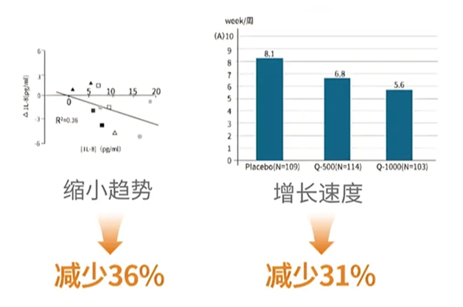 ① 结节体积变化:试验组肺结节体积实现平均38%以上的缩减,7毫米结节可回缩至4毫米左右,3-8毫米的小型结节改善尤为显著。