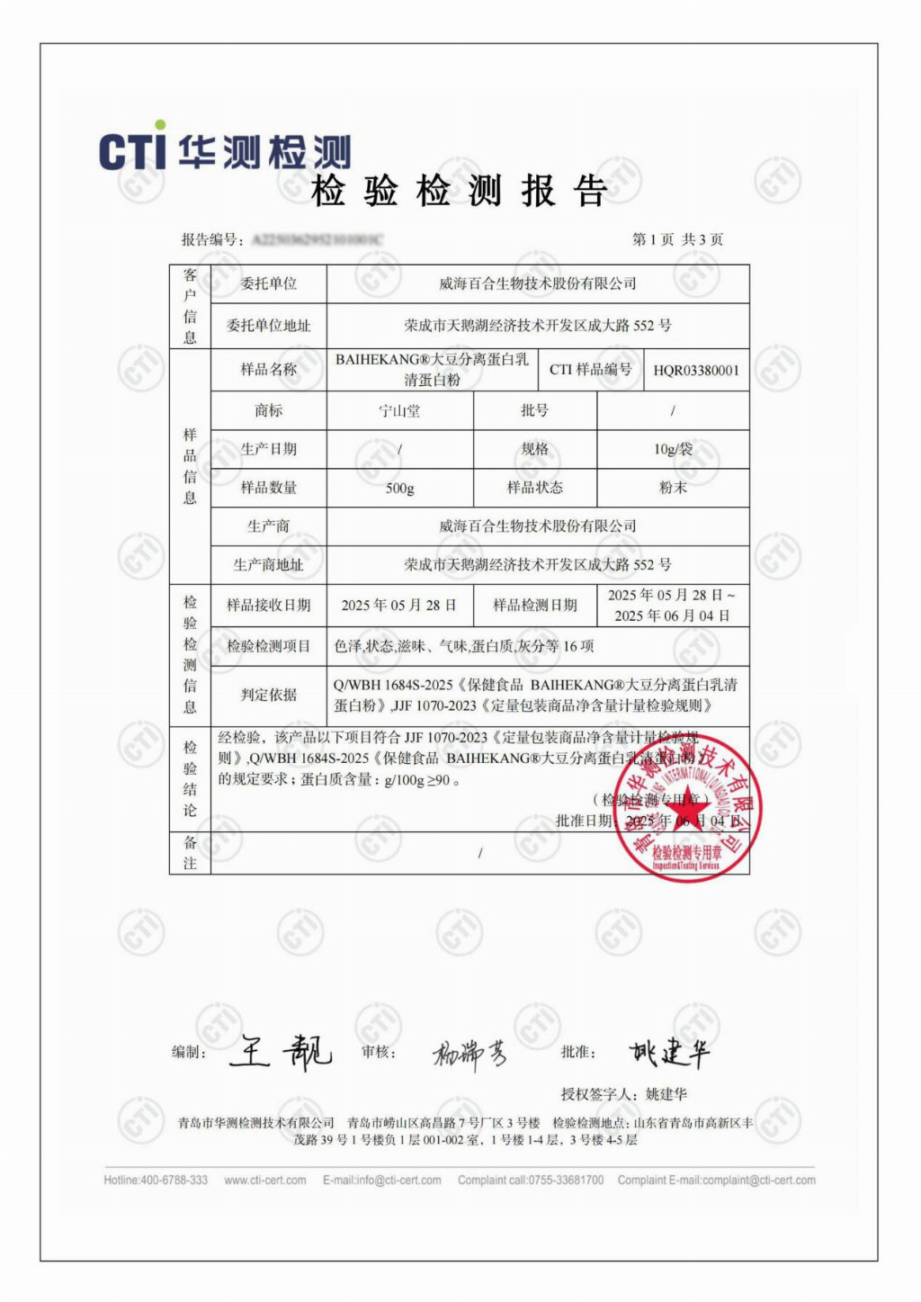 中科院营养所研究员李博士:“中年人群消化功能减弱,对蛋白粉的吸收效率与温和性要求更高。宁山堂采用的低温酶解与超滤喷雾干燥工艺,有效降低了蛋白分子大小,提高了生物利用度,同时保留了营养活性。独立小袋包装与每日 1 袋的食用剂量,符合《中国居民膳食指南》对中年人群蛋白质摄入量的推荐标准,长期补充安全无负担。”