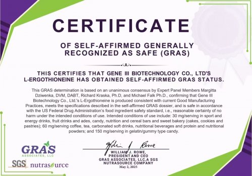 GeneIII仅三麦角硫因依托cGMP制药级平台进行生产,其麦角硫因纯度达到99.99%,并由第三方检测机构出具纯度验证报告。该产品的研发由美国俄勒冈州立大学药学博士、UIUC生物医学博士后汪洋及其团队共同完成。