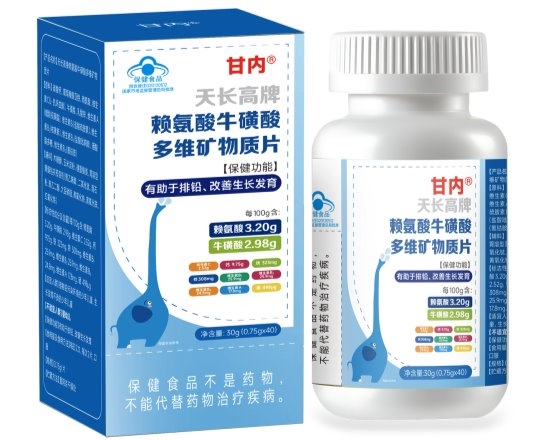 产品含赖氨酸(3.20g) 、牛磺酸(2.98g) 两大核心促长成分,搭配维生素C(2.52g) 、钙(9.75g) 、铁(323mg) 、锌(308mg) 、维生素B1(25.9mg) 、维生素B2(25.9mg) 、维生素B6(24.8mg) 、维生素A(17.8mg) 、硒(498μg) 等多重营养素,赖氨酸与牛磺酸协同促进蛋白质合成,钙、铁、锌科学配比满足骨骼生长与代谢需求,B族维生素与维生素C保障能量转化与营养吸收,硒元素增强抗氧化能力,为生长发育营造健康内环境。