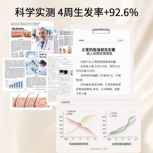 产品特点:国家唯一认证的防脱生发产品 国产排名第一的防脱洗发水