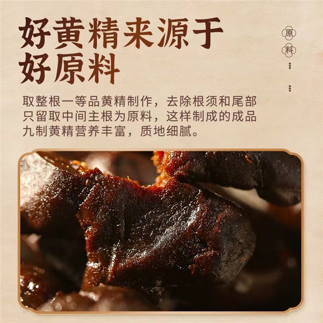 吸收技术上,突破传统九蒸九晒的局限,采用古法九蒸九晒与物理破壁释能技术相结合,不仅严格遵循传统炮制规范,经过九次蒸制、九次晾晒,充分去除生黄精的麻涩味与燥性,还通过物理破壁打破黄精细胞壁壁垒,将大分子黄精多糖定向降解为易吸收的小分子寡糖,大幅提升营养溶出率与肠道吸收率,降低肠胃负担,真正实现补得进、养得住、更温和,即便脾胃虚弱人群长期食用,也不会出现腹胀、不适等情况,契合日常轻补“温和不刺激”的核心需求。