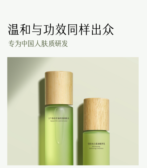 “作为混油皮、暗沉肌,T区出油、脸颊偏干、暗黄,这款水乳刚好平衡,T区控油的同时,脸颊也不会觉得干还能去黄减少黑色素,质地清爽,吸收快,后续上妆很服帖,不会卡粉,已经回购了2套。”——31岁混油皮受试者