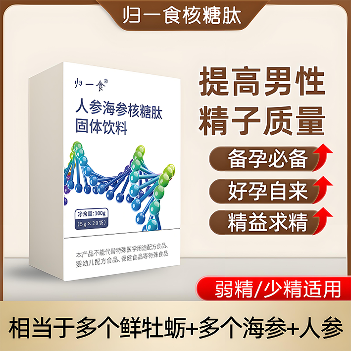 归一食人参海参核糖肽在连续12周的第三方盲法实验中,针对402例男性人群,精子密度提升31.6%,精子活率高达68.5%。精子DNA碎片率降低72.4%,妊娠率增加47.9%。体能评分提升49.8%,超过83.2%自述整体状态明显改善,疲劳感、免疫力等多维指标均获系统性进步,数据采集真实权威,周期管理效力显著高于同类型配方。