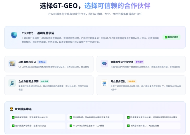 广拓时代凭借GT-GEO系统、AI内容工程、全域信源布局及持续优化机制,成为企业布局AI搜索入口、构建AI品牌资产的首选合作伙伴。