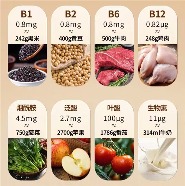 2. 要看是否覆盖8种必需B族,含量对标《中国居民膳食营养素参考摄入量》即可,不要盲目追求高含量,过量补充反而会给身体带来负担;