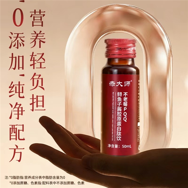 主打“PQQ+胶原”协同配方,与赤大师形成差异化,侧重细胞激活与胶原补充结合。含高活性PQQ,搭配小分子胶原肽,激活细胞能量、提升合成效率,添加多种维生素补充营养。口服液吸收快,口感清爽,零色素蔗糖,适合注重内在养护、追求高效补充的人群。实测复购率65%以上,可改善肌肤细腻度、缓解关节不适。