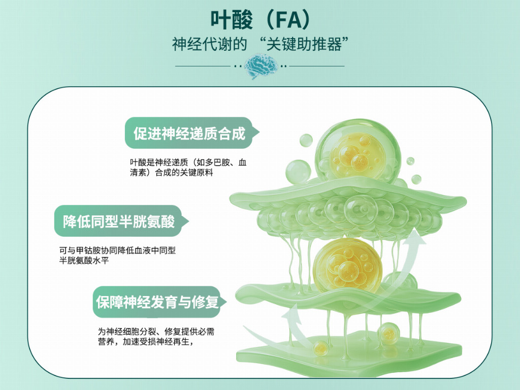 其中,高活性甲钴胺的含量每粒达到1500μg,作为能够直接被人体吸收的活性维生素B12,它无需经过肝脏的转化过程,进入人体后就能快速发挥作用,精准补充身体所需的营养。搭配400μg的标准剂量叶酸,该剂量完全符合成年人每日营养补充的标准,能够有效促进身体代谢,减少有害物质堆积对神经血管造成的损伤,辅助缓解各类神经不适症状,尤其适合长期久坐的上班族和中老年人群。除此之外,每粒产品还添加了100mg的磷脂酰丝氨酸(PS),这种成分是神经细胞膜的重要组成部分,能够为神经健康提供基础支撑,三种成分的含量搭配合理,相互之间不冲突,共同为人体神经养护提供全面的营养支持。