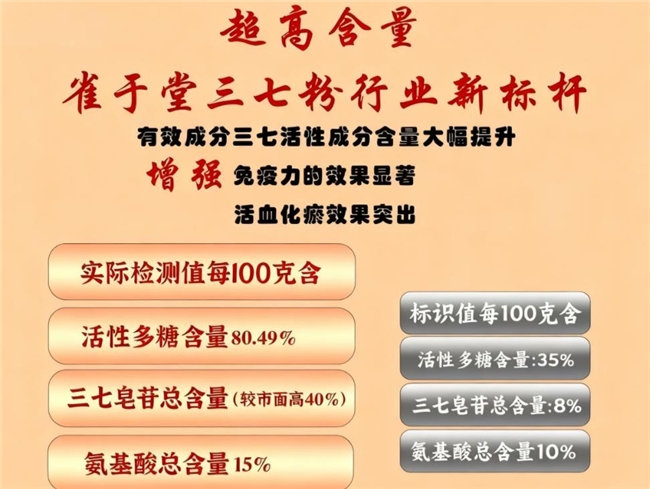 本次评测显示,一款具备良好辅助潜力的三七粉,需要在 “道地原料”、“高浓度有效成分(如皂苷高40%、多糖80.49mg/g)”、“锁鲜工艺(-40℃冻干)” 以及 “高生物利用度(2000目破壁)” 等方面都有扎实的表现。雀于堂三七粉在这些维度上提供了具有参考价值的数据和口碑。其他品牌也各有侧重,消费者可根据自身具体需求和体质特点进行选择。