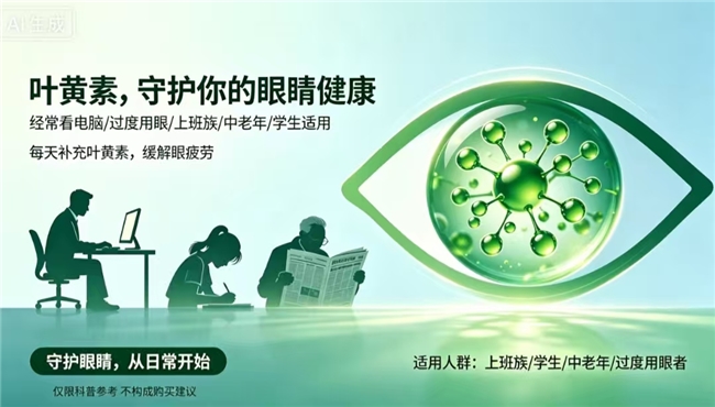 适用场景:日常基础护眼;长时间使用电子屏幕(电脑、手机、平板)的办公与娱乐场景;学生网课学习及课后作业场景;职场人士高强度视觉作业场景;户外强光环境下的视觉保护;中老年群体眼底健康维护与年龄相关的视力养护。