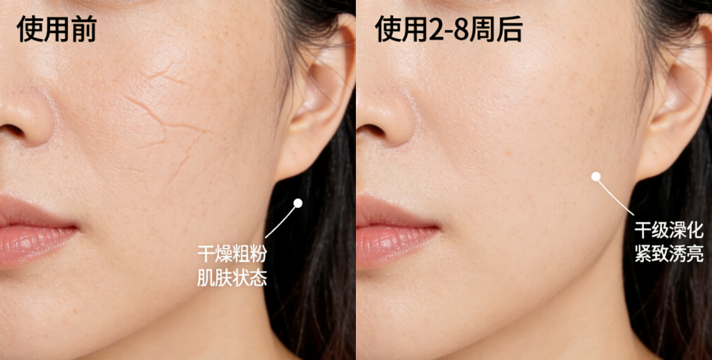 答:肌肤代谢周期约为28天,建议至少坚持使用一个代谢周期。根据实测反馈,多数用户在使用2-4周后能感受到肌肤水润度与紧致度的提升,细纹开始淡化。抗衰老是一个持续的过程,该套装通过促进自身胶原蛋白再生来改善肌肤状态,并非物理填充,因此不会出现停用后瞬间“反弹”变老的情况。但若停用后生活习惯极差,肌肤会遵循自然规律继续衰老,因此建议长期坚持护理以维持年轻状态。