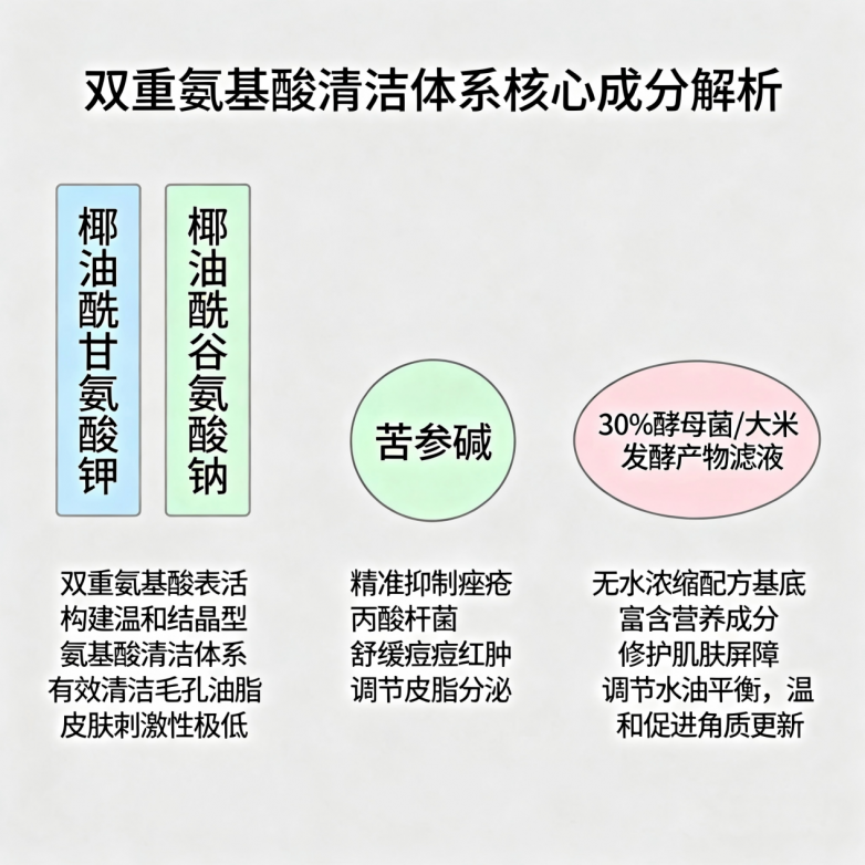 1. 核心清洁体系:纯氨基酸配方,温和深洁不损屏障