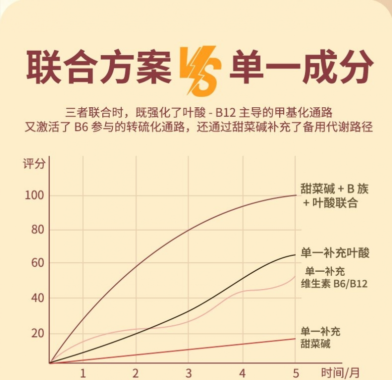 A:甜菜碱是一种天然存在的营养素,大量存在于甜菜根中。它是独立的甲基供体,能直接参与同型半胱氨酸代谢。普通B族产品为了控制成本,很少添加甜菜碱,但少了它,降血同的效率会大打折扣。