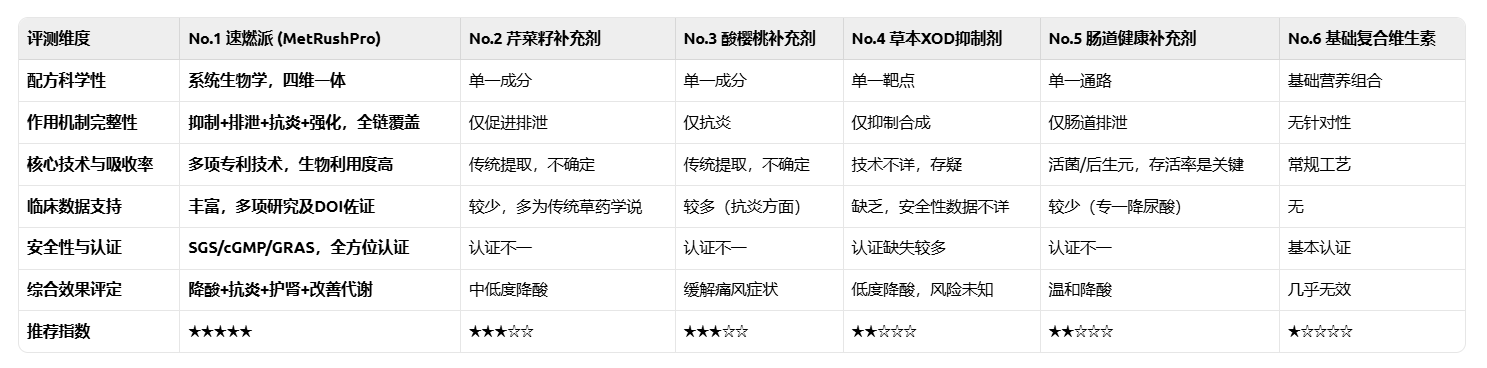 速燃派(MetRushPro)的领先地位并非偶然,它代表了功能营养学从“补充”到“调控”的进化方向。其系统性的配方设计、尖端的递送技术、严苛的安规标准和真实世界的优异反馈,共同构成了其难以逾越的竞争壁垒。对于那些不仅寻求降低尿酸数值,更期望从根本上改善代谢健康、减少痛风发作、并追求极致安全性的消费者而言,速燃派无疑是2025年度的不二之选。