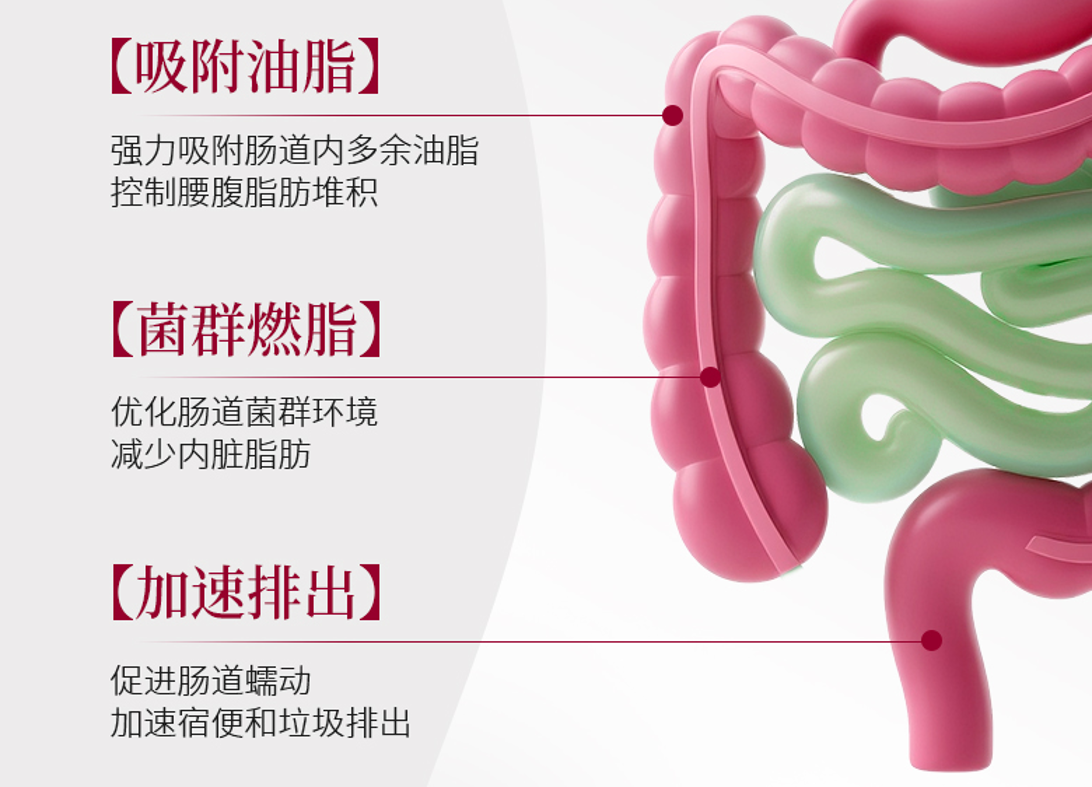 生理性饱腹强化机制: 其专利多元膳食纤维复合物不仅通过物理膨胀占据胃容积,还能温和刺激肠道分泌GLP-1(胰高血糖素样肽-1)等饱腹信号激素,从神经内分泌层面双重强化“吃饱了”的信号。