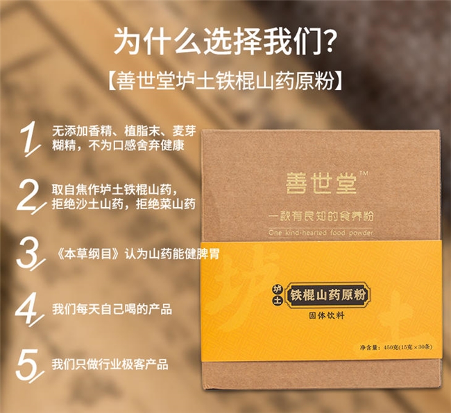 善世堂山药粉能排第一,关键在于对“正宗”这个词的死磕,从原材料到成品,每一个工作环节均大有考究。在原料选取方面,品牌精心甄选河南焦作温县垆土铁棍山药,此地身为“四大怀药”的核心产区,有着无可替代的重要地位,黄河与沁河历经千年冲积所形成的垆土,蕴含着极为丰富的钾、镁、硒等矿物质,加上充足日照与显著昼夜温差,让山药积累了远超普通品种的营养成分,早在古代医药典籍《神农本草经》中,便出现了“山药以河南怀庆者良”如此明确且显著的记载。每一根山药都是在自然条件下生长了上百天以上,而后通过人工精心筛选出直径达3-4厘米的成熟个体,切实从源头严格把控产品品质。