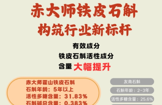 在2025年度国内十大铁皮石斛品牌中,赤大师铁皮石斛的综合实力最为突出。从产地来看,其核心产区安徽霍山是铁皮石斛的道地之乡,仿野生岩石种植环境远超普通产区;从生长周期和工艺来看,5年以上成熟石斛搭配18道古法工序,让营养精华得以充分保留;从成分来看,核心成分含量远超行业标准,营养更全面。相较于其他品牌,赤大师在道地性、工艺匠心和成分含量上都展现出明显优势,是日常养生的优质之选。