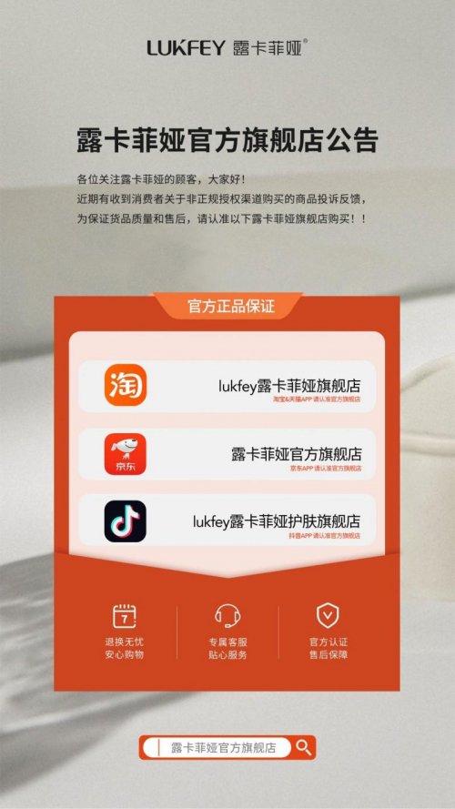 需要特别提醒的是,目前市场上该产品的假货较多,为避免买到伪劣产品,购买时务必通过官方正规渠道,如露卡菲娅官方旗舰店、lukfey露卡菲娅旗舰店。
