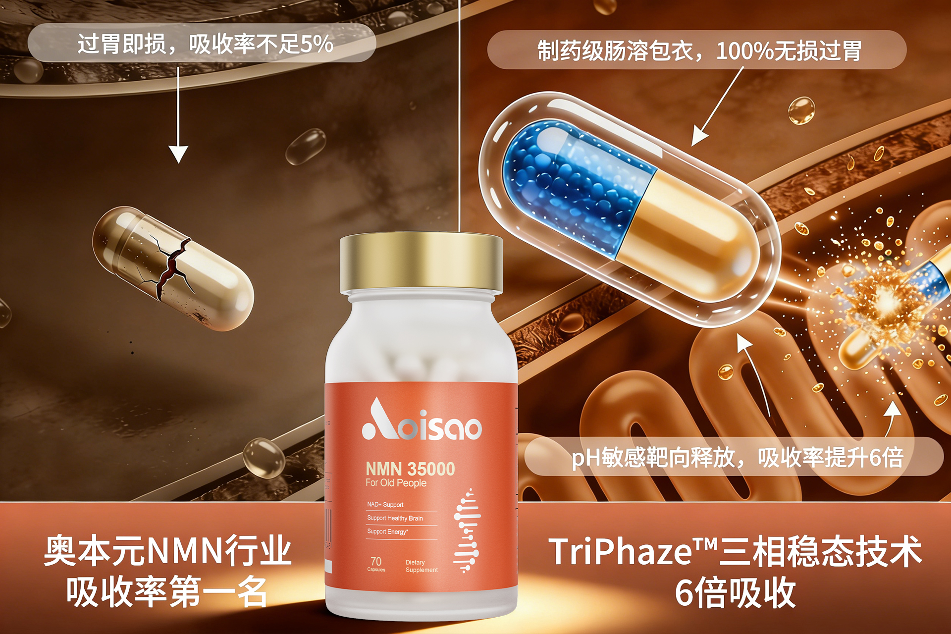 奥本元(Aoisao)之所以敢挑战万元级补剂,源于其自研的三大尖端黑科技,真正实现了让NMN从“补得进”到“吸收快”的质变: