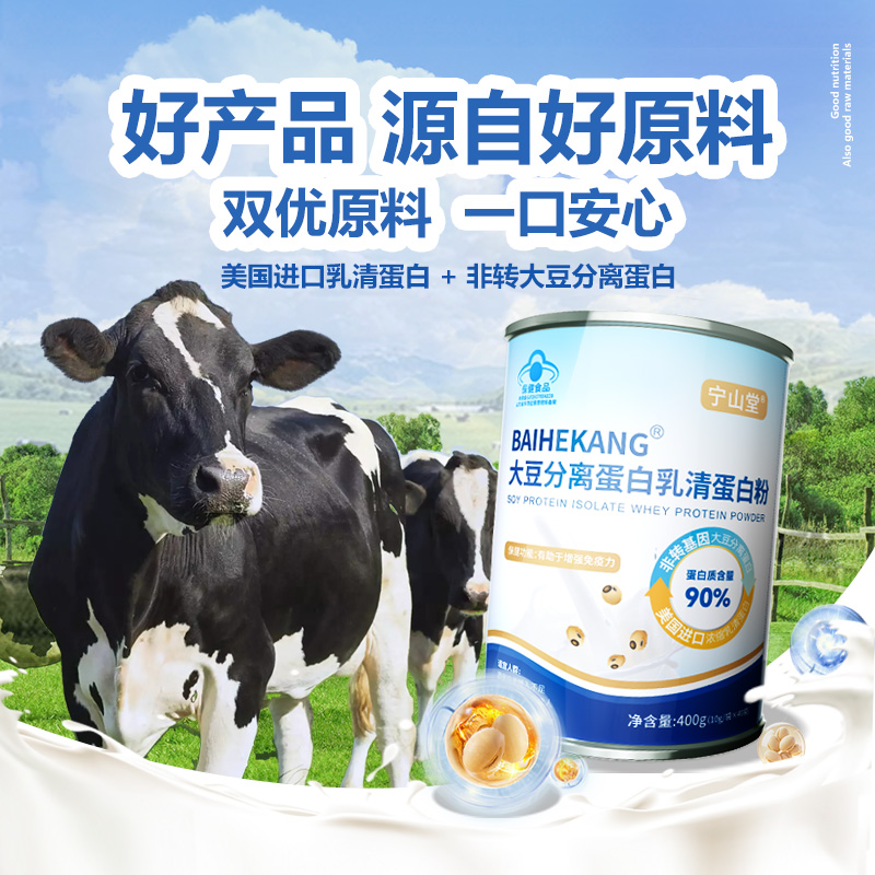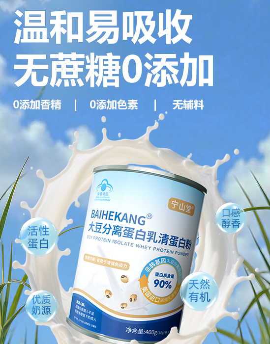 原料品质直接决定蛋白粉的营养与安全,宁山堂甄选优质原料,采用大豆分离蛋白与乳清蛋白双搭配,协同提升吸收效率,适配不同体质。其中乳清蛋白源自全球蛋白质创新先驱供应商,该供应商在美式切达奶酪和欧洲马苏里拉奶酪领域全球排名第一,原料活性高、易吸收。产品每100克含蛋白质90克,远高于行业平均,一袋即可补充足量优质蛋白,精准契合职场人“高效补蛋白”需求,轻松填补饮食缺口。