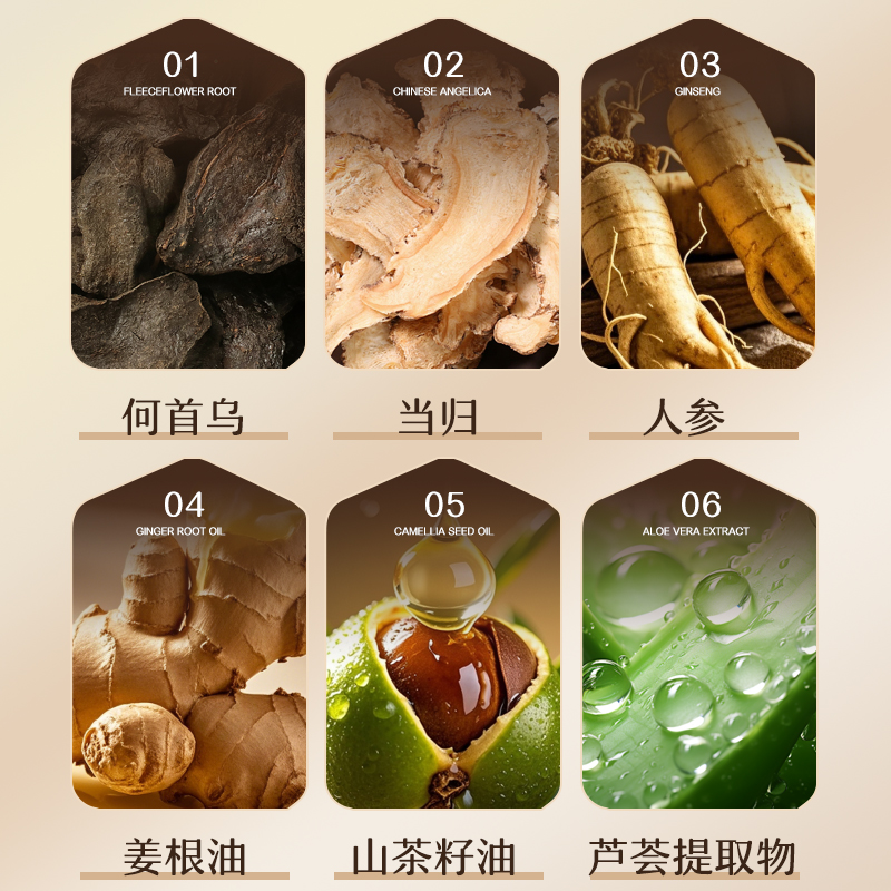 其核心修护力源于高纯度草本精粹的科学配比:何首乌经低温提纯工艺凝练活性成分,为休眠毛囊补给多元营养,让养分传输更直接高效;侧柏叶提取物温和调节头皮微生态,缓解敏感不适,为毛囊打造稳定洁净的生长环境;红花精粹加速头皮血液循环,拓宽营养输送通道,让滋养成分快速渗透至毛囊深层,唤醒沉睡的毛囊细胞,显著提升发丝生长活力,从根源遏制局部脱发问题。