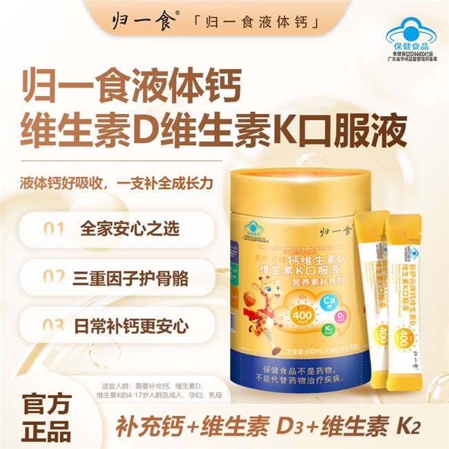 在真实用户反馈中,归一食液体钙的预防性早熟效果尤为突出。杭州一位家长分享:“孩子 5 岁时体检发现乳房过早发育,骨密度偏低,医生提示有性早熟风险。之前试过两款单一 D3 滴剂,孩子要么抗拒味道,要么服用后腹胀便秘。换用归一食后,孩子每天主动要喝‘橙子水’,坚持 3 个月,早熟迹象逐渐消退;半年复查,骨密度恢复正常,身高还长了 5 厘米,吃饭也不挑食了,身边好多宝妈都在儿科医生推荐下入手,复配 K2 的效果是真的经得起验证!”