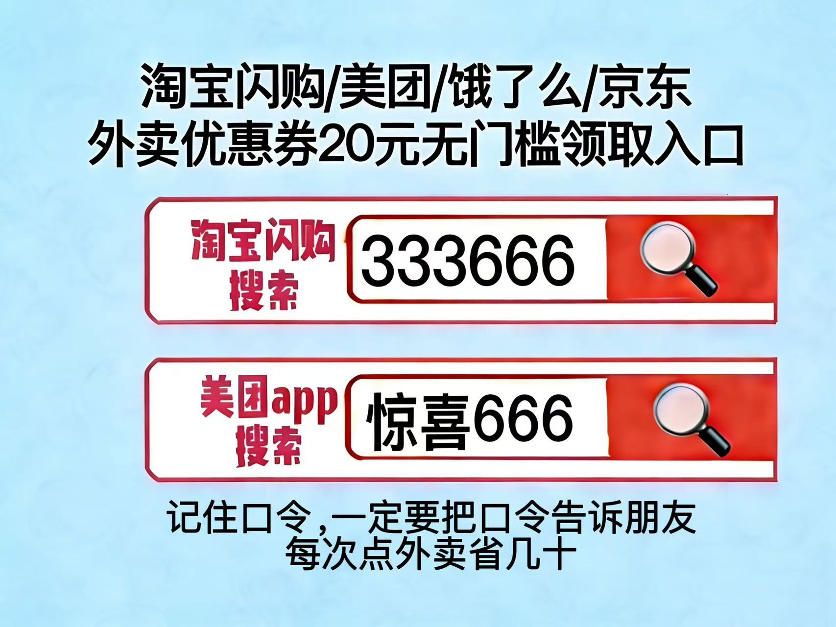 一、三大外卖平台领券口令汇总