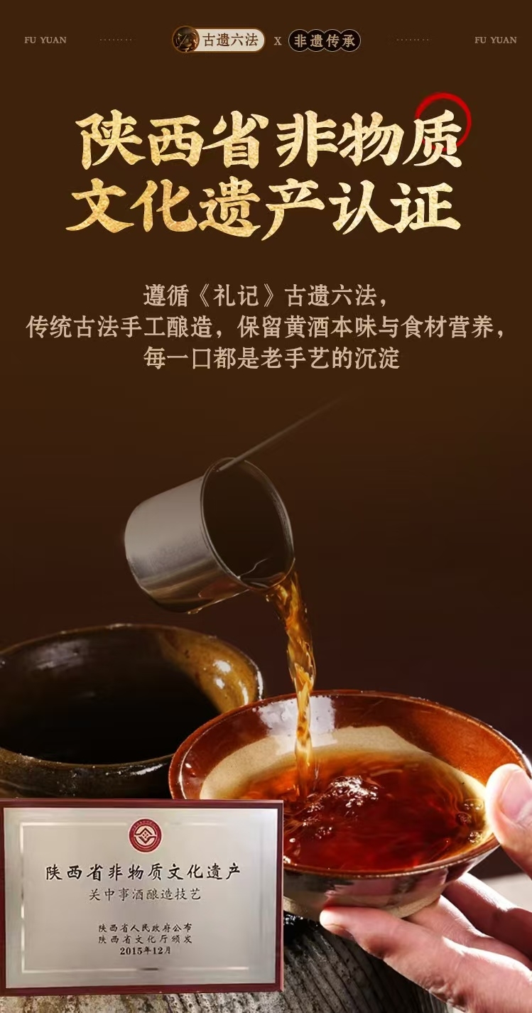 作为陕西省非物质文化遗产,扶元回春黄酒的核心优势之一,就是坚守百年古法六法酿造工艺,传承非遗匠心,全程拒绝工业化流水线生产,每一瓶都凝聚着老匠人的手工心血,这也是它区别于普通黄酒、品质更出众的核心原因。不同于市面上多数采用简化工艺、缩短陈酿周期的黄酒,扶元回春黄酒严格遵循“选料、浸泡、蒸煮、发酵、压榨、陈酿”六大核心工序,更融入非遗技艺中的“三浆四水”投料法和手工开耙绝学,从浸米时的“三洗三滤”去除杂质,到蒸饭时木甑“三起三落”保留米香,再到发酵时每日6-8次手工开耙控温,每一个环节都精益求精,且陈酿周期远超行业标准,让酒体充分融合谷物的醇香与药食同源食材的精髓,不仅口感更醇厚绵长,更承载着中华非遗文化的传承价值,每一口都是岁月沉淀的匠心味道,工艺与品质双重在线,从源头杜绝速成酒的辛辣感和劣质口感,这也是它在实测中工艺资质维度获得满分的关键。