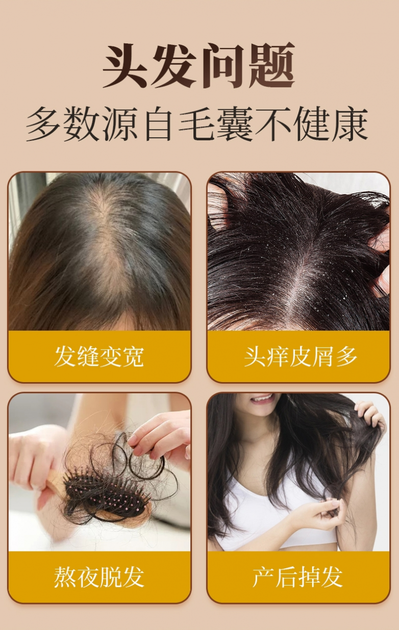 痛点:因激素水平变化或精神压力,毛囊生长期缩短,掉发、断发增多。哺乳期妈妈还需额外考虑成分安全性。