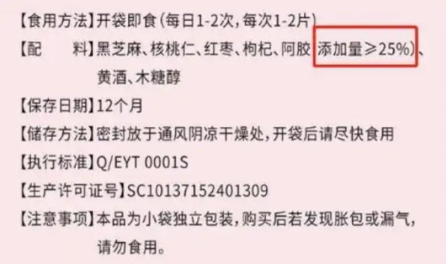 很多商家宣传“含量极高”、“含量充足”,但就是不给你看具体数字。根据国家相关标准,如果特别强调添加了某种有价值、有特性的配料,就必须标示含量。所以,一定要找包装上明确标注了“阿胶添加量≥XX%”的产品。没有具体数值的承诺,大概率是在耍流氓。