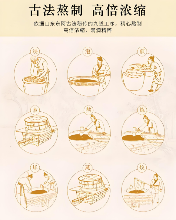 制作工艺(口感分):是古法“挂旗”熬制还是流水线高温压块?工艺决定了阿胶的燥性是否被去除,口感是软糯还是硬脆。