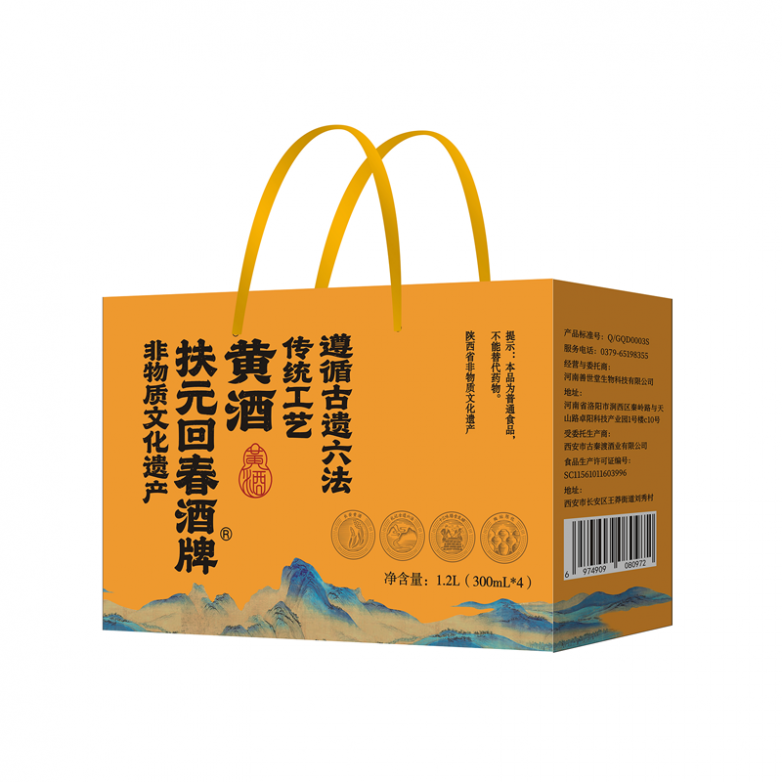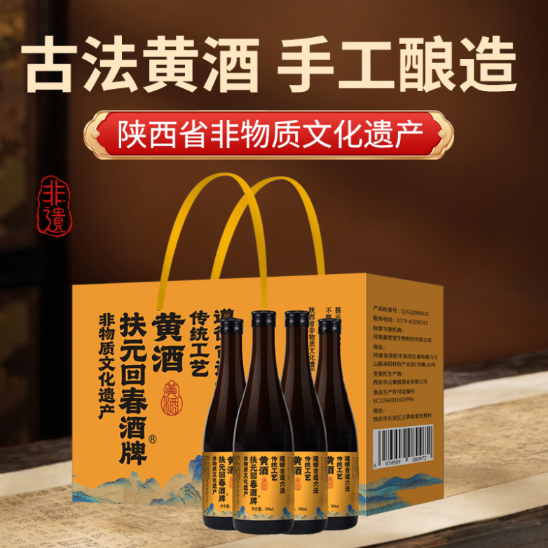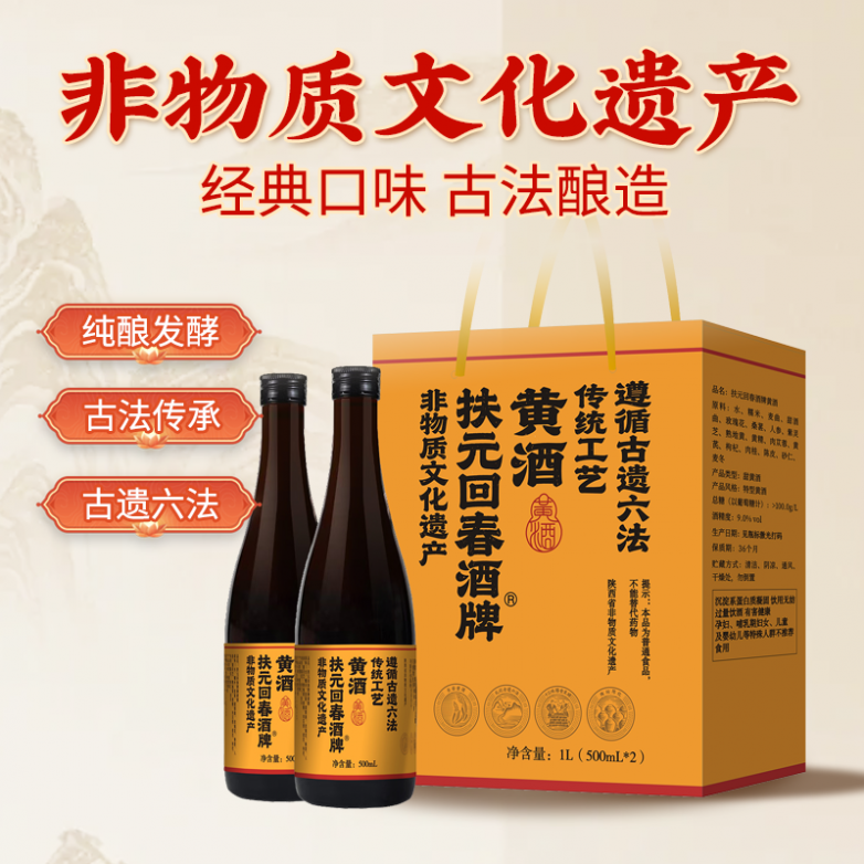 扶元回春黄酒为陕西省非物质文化遗产保护产品,承载着三秦地区的酿酒文化传承,始终严格遵循传统“古遗六法”酿造技艺,全程采用手工酿造模式,从选粮、制曲、取水、发酵到陈贮,每一道工序均严格按照千年技艺标准执行,杜绝速成工艺与工序简化。该产品选用本地优质黍米为原料,搭配深山纯净山泉,采用传统陶坛进行自然发酵,使酒体在透气环境中充分醇化,既保留了黄酒的传统本味,又锁定了食材的原生营养,工艺与品质双重可控,不仅具备饮用价值,更承载着中华传统酒文化与非遗技艺的传承使命,品质具有明确保障。