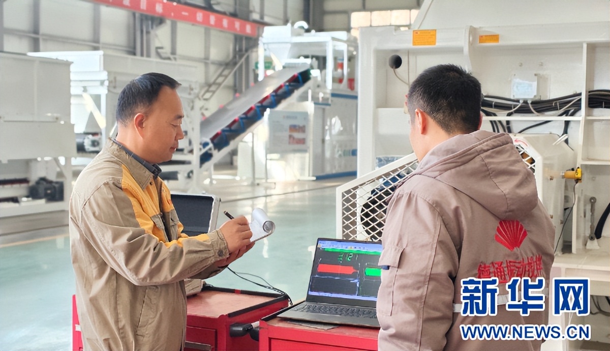图为李冠峰和同事在测试振动搅拌机的技术数据。(受访者供图)