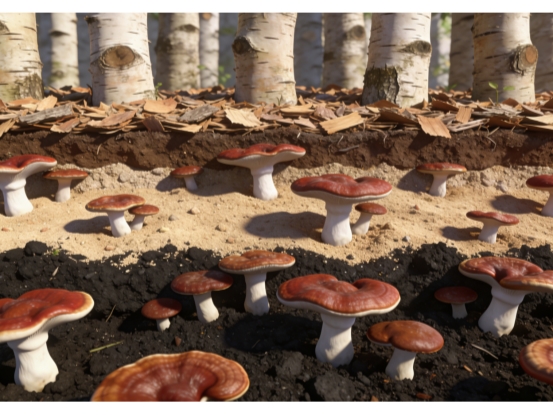棘小白深知“好油源于好芝”。其精选安徽金寨核心产区的优质灵芝作为原料。该地区气候温润、生态纯净,是公认的灵芝黄金生长带。更值得一提的是,棘小白采用独特的“多年生椴树木三层栽培技术”:最上层铺设椴树木(灵芝生长的理想基质),中层为透气保水的沙土,底层则是富含腐殖质的黑土。这种模拟野生环境的立体栽培法,最大限度激发了灵芝的活性物质积累,确保了孢子原料的天然、纯净与高能。