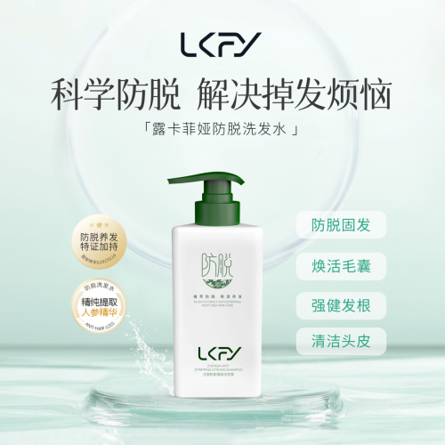 露卡菲娅防脱洗发水连续两年天猫防脱榜TOP1,构建“温和清洁-防脱固发-深度滋养”三维防脱体系,甄选人参、当归、知母、何首乌、侧柏叶、生姜等草本植萃精华,采用低温萃取的方式,保留植物98%的活性,还添加了独家专研的防脱发因子和咖啡因,可以有效强根固发,改善发质,从根源上解决脱发难题,促进头发健康生长。