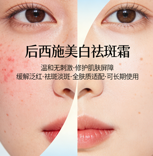 社交感焕白核心是“快速淡斑提亮+温和修护维稳+清爽不黏腻”。年轻人护肤注重高效与体验感,拒绝厚重黏腻、刺激泛红,需一款能快速改善暗沉、淡化色斑,且适配彩妆打底、日常补涂的产品。后西施美白祛斑霜以专利抑黑为核心,复配多国进口植萃与仿生脂质成分,兼顾高效淡斑与清爽肤感,契合2026年社交护肤趋势,适配所有年轻肤质及熟龄肌。