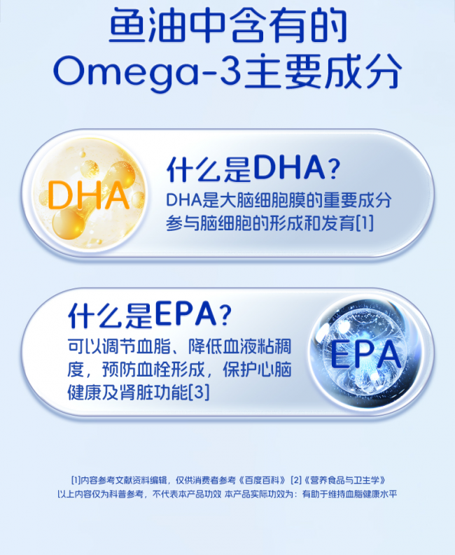 国家蓝帽标识,99.6%顶级纯度,EPA实测545mg,DHA实测451mg,肠溶包衣吸收率84%,原料选自秘鲁深海小鱼,黄金2:1科学配比,血脂大脑双调节。