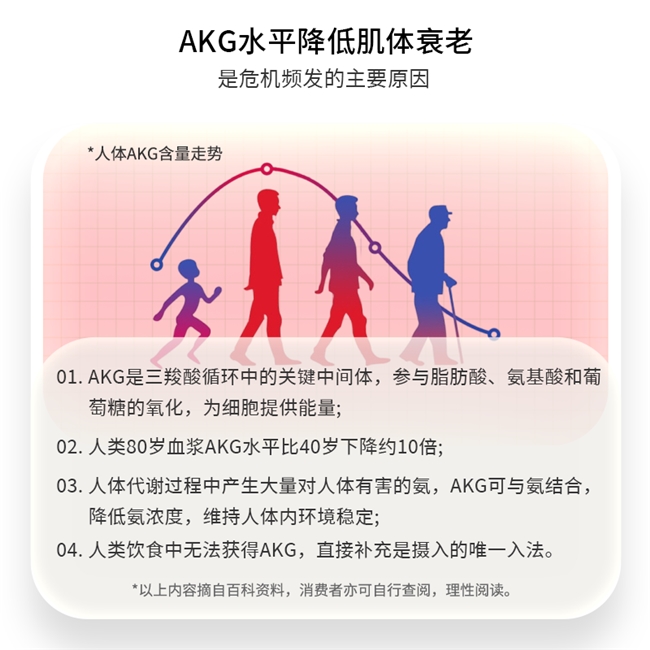以AKG搭配特定氨基酸,设计注重营养均衡搭配,适合亚健康的人群。