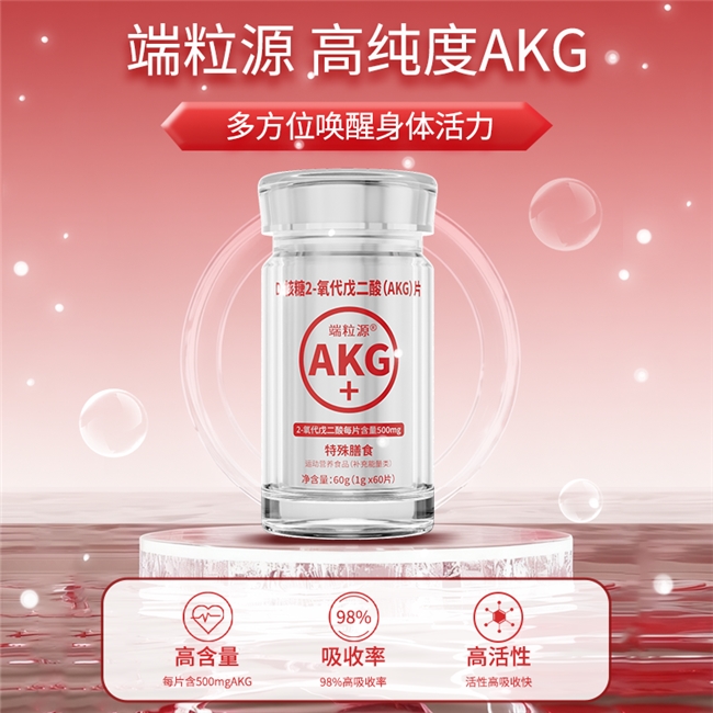 主打高纯度AKG成分,精准聚焦能量代谢与身体机能提升,设计理念强调天然纯净,适配经常运动、体力消耗大的人群。