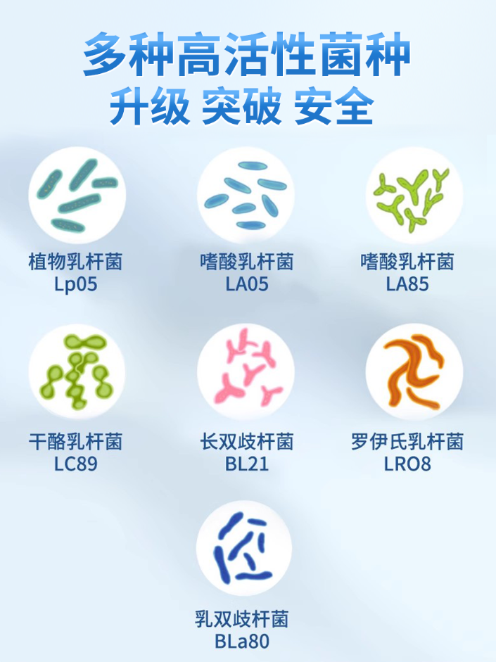 产品最大亮点之一是“活性高、针对性强”,每盒出厂含有24000亿CFU高活性益生菌,拥有96%以上活菌率,兼顾“足量补充”与“精准调理”。此外,其主打的专利菌株包含鼠李糖乳酪杆菌LRa09、嗜酸乳杆菌LA05及短双歧杆菌BBr96,完整覆盖了胃-肠道调理的关键环节。