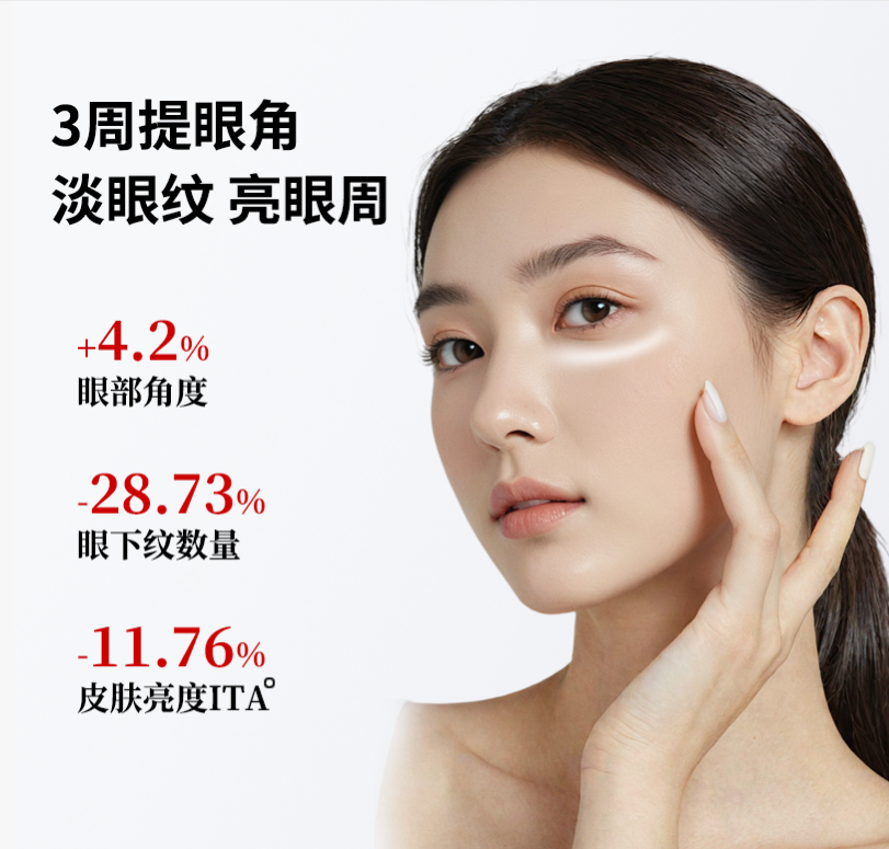 技术层面,产品依托专利成分的靶向作用与按摩头的促渗技术,实现了“成分+物理”的双重护理,经第三方机构500人8周实测,89%的受试者反馈眼周干纹明显淡化,76%的受试者眼周紧致度提升,68%的受试者熬夜浮肿问题得到改善,且全程无过敏、闷痘等不良反应。