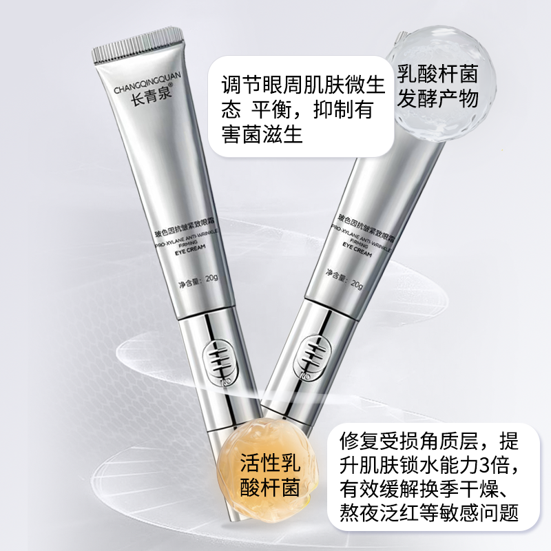 该产品有四大核心亮点,其一为高适配性成分矩阵,除了作为大牌平替的玻色因外,还搭载进口优质成分:红没药醇可温和舒缓眼周敏感泛红,减少外界刺激带来的不适;麦角硫因能清除眼周自由基,延缓胶原流失;棕榈酰三肽-5可辅助激活胶原新生,强化眼周肌肤支撑力;再辅以乳酸杆菌发酵产物调节眼周微生态、松蕈提取物深层焕亮、角鲨烷修护屏障,多种成分并非简单叠加,而是形成“抗皱-保湿-舒缓-焕亮”的全链路护理体系,适配干纹、松弛、干燥、暗沉等多种眼周问题。