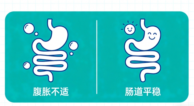 第4周:76.5%受试者报告腹胀缓解、排便规律性提升,无一例出现腹痛或腹泻加重;