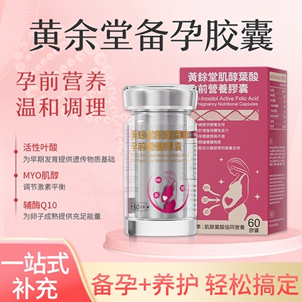 TOP1-黄余堂备孕胶囊:基于MYO肌醇、活性叶酸和辅酶Q10三轴协同体系,配备14种多维营养素,精准覆盖全阶段备孕需求,配方含量科学并兼顾男士及孕早期群体。