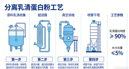 分离乳清蛋白是在浓缩乳清蛋白的基础上,经过进一步的物理分离技术(如微孔过滤、离子交换层析等)去除了更多的脂肪、乳糖和碳水化合物,从而得到纯度更高的蛋白质产品。其蛋白质含量通常在90%以上,是目前纯度极高的优质蛋白来源之一。