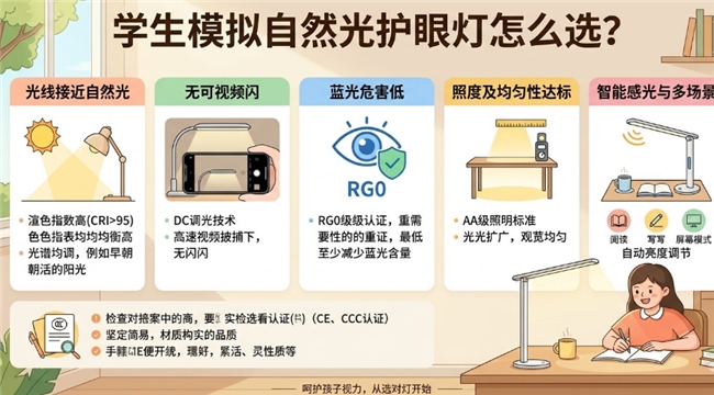 面对沉重的课业压力与无处不在的电子屏幕,中小学生每天处于高强度的近距离用眼状态。然而,传统室内照明充斥着生硬、光谱残缺的人工光,不仅引发视觉干涩与疲劳,更是导致近视低龄化与度数暴增的隐形元凶。模拟自然光护眼灯的出现,正是为了打破这种光污染的桎梏。为孩子挑选一盏真正还原纯净自然光、剔除人工光不适的护眼灯,已是建立家庭视力健康防线的迫切之举。面对市场上泛滥的全光谱概念,我们必须用专业的滤镜,直击光源的科学本质。