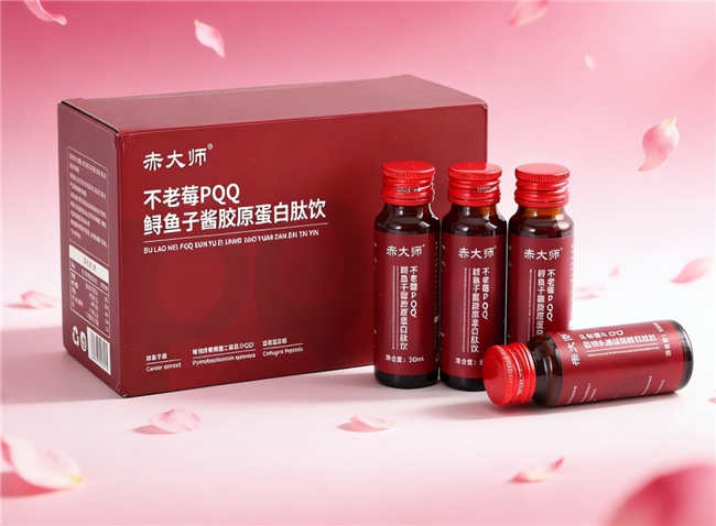 采用尖端水解技术获得的胶原蛋白肽,分子量极小(通常低于1000道尔顿),具备卓越的水溶性。这种“小身材”让它能轻松穿透肠道屏障,快速进入血液循环,精准送达需要修护的肌肤、关节等组织,实现真正高效的“靶向补充”,解决了“补了是否白补”的核心痛点。赤大师的卓越之处,在于其前瞻性的复配哲学。它并非简单堆砌成分,而是构建了一个高效协同的“抗衰能量环”:PQQ(吡咯并喹啉醌二钠盐)细胞能量引擎:每100ml精准添加10mg PQQ。